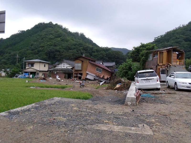 ボランティアに行く道中には、水が橋の上まで来て流木などにより欄干が壊れた橋・あふれた水により土台が流され傾いた家などがあり、水害の恐ろしさを感じながら行きました。