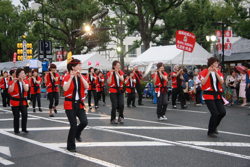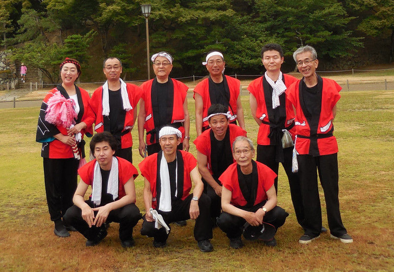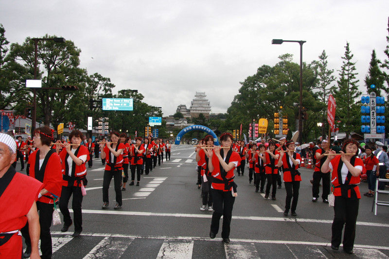 PM 5時14分の行進スタートに合わせ、全員バス3台に分乗し姫路城三の丸広場に到着し、そこで全員での練習を行い本番にそなえました。