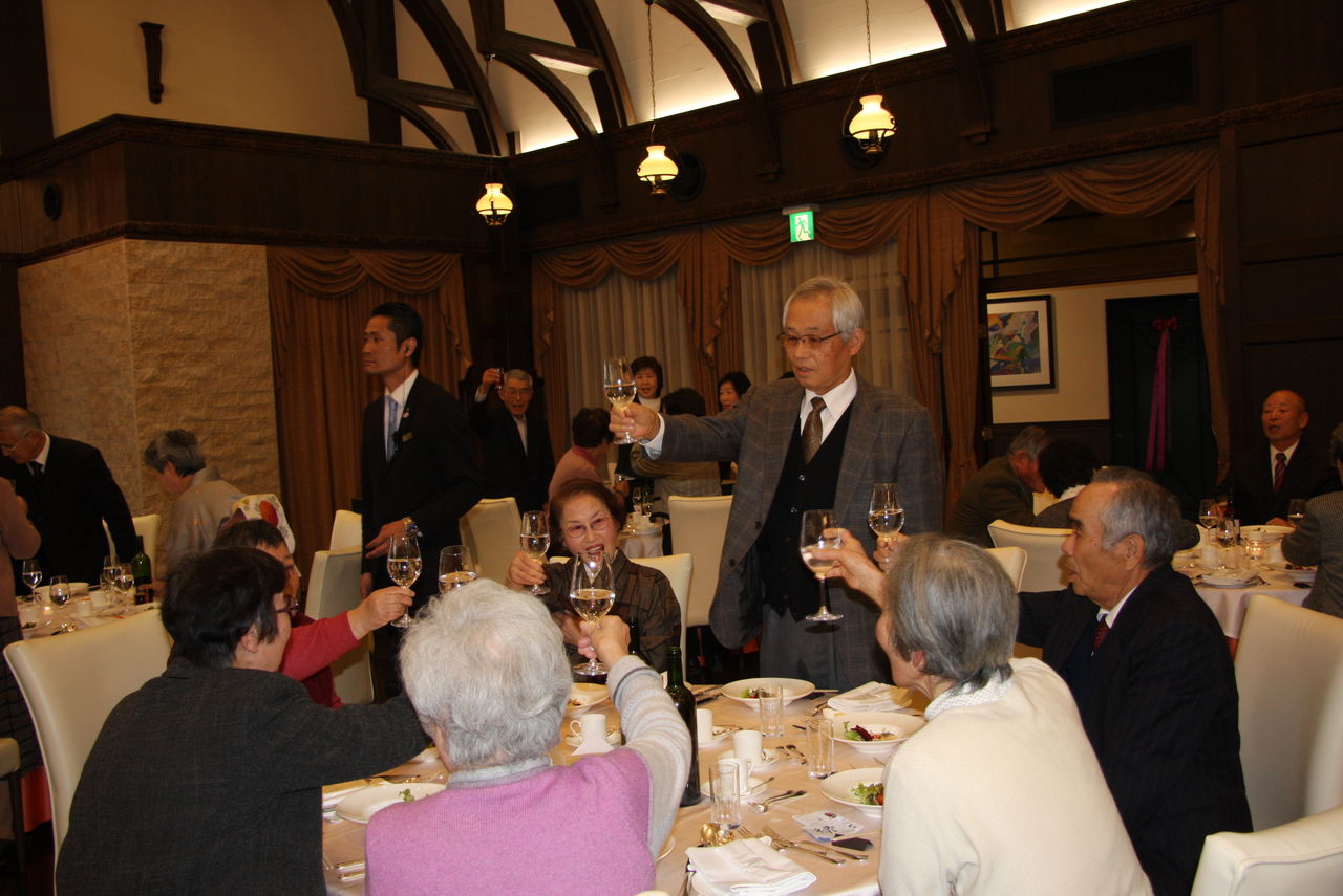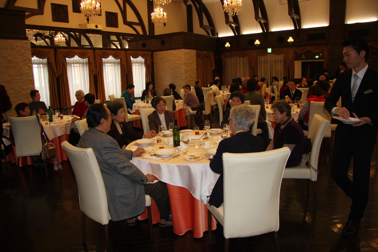 ヴィーナ 姫路」で開催されました。河南教会長を始め、51名の会員が参加しました。田中副幹事の開式のことば、河南教会長の挨拶があり、そして会員の今年一年の健康を祈念して小坂幹事の音頭で「乾杯」・・。新年会が始まりました。 全員、フランス料理のフルコースを頂きながら、ほのぼのと懇親のひとときを過ごしました。