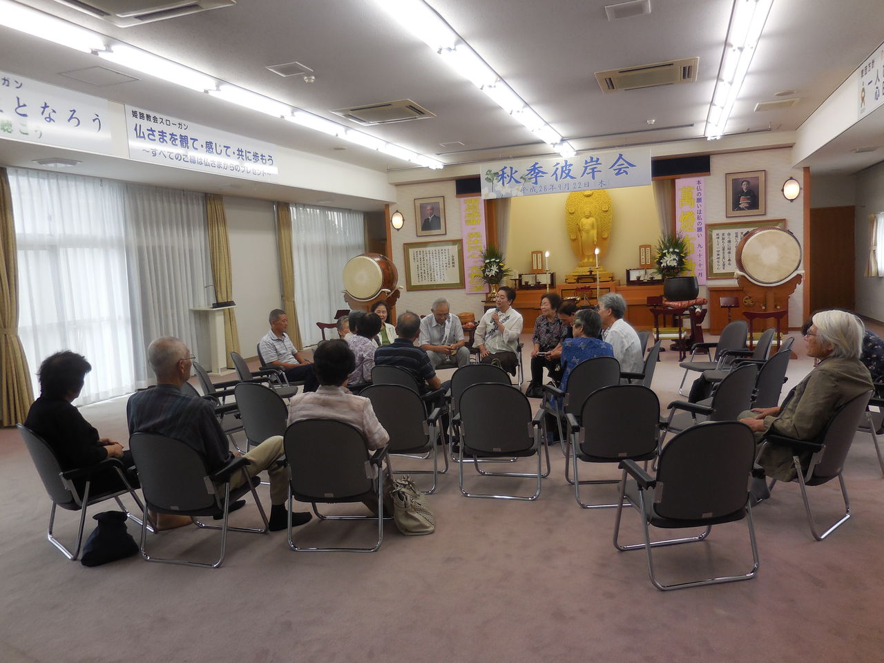 敬老月の9月13日に「ほのぼの会のつどい」が行われました。18人が参加されました。朝のご供養の後、教会長さん法座主で法座、浄心行、お昼には手づくりのカレーを頂きひと時を過ごしました。