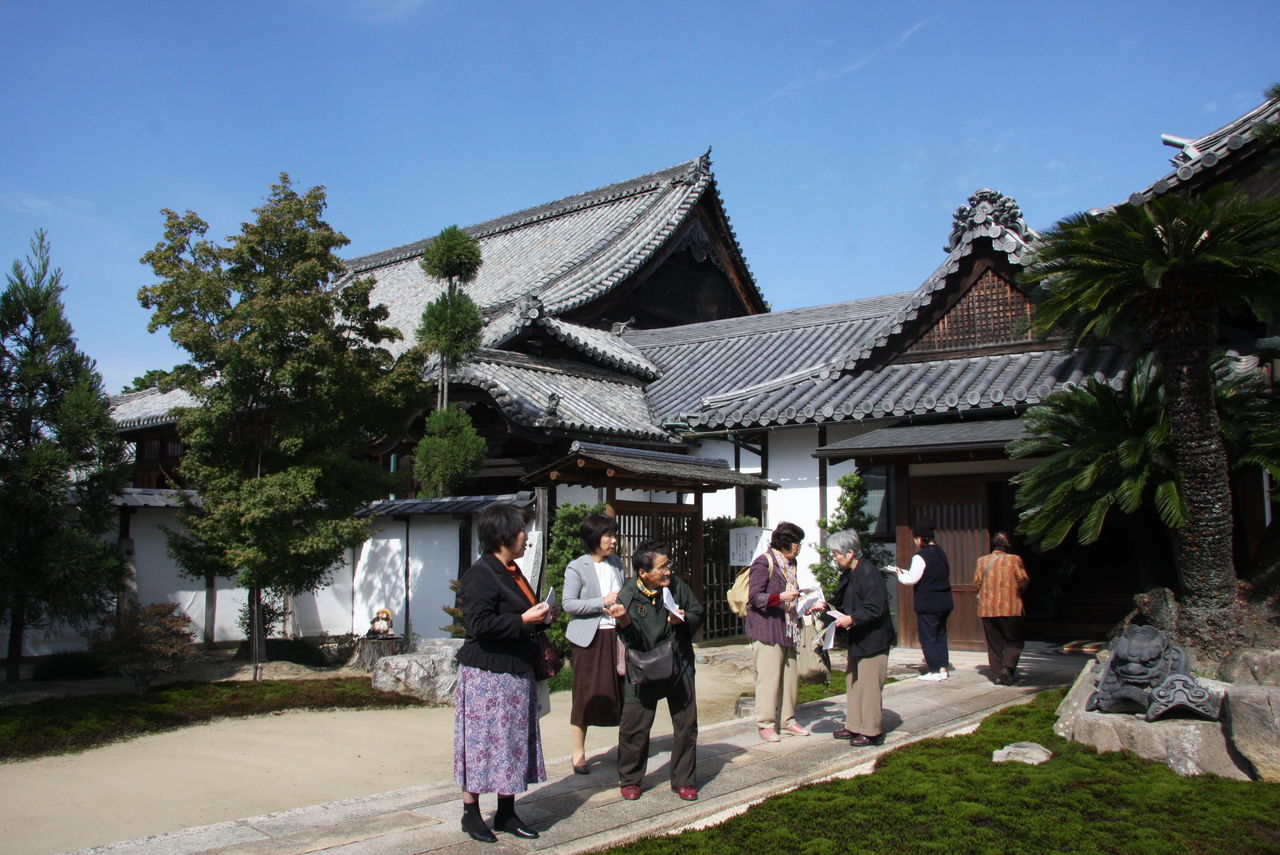 今年も姫路教会の11支部で、地区・支部大会が各地で行われました。姫路北支部は、10月30日に支部大会が行われました。57名が参加して、バスで姫路市網干区にある天徳山 龍門寺に参拝しました。光?さまが今年にかけ2度 同寺をお訪ねになり、住職・大衆禅道場師家 河野太通老大師と『日本の平和』について対談されました。河野老大師には叡智の会に参加していただき宗教宗派を超えた宗教協力に尽力いただいています。さらには姫路南支部の会員さんが毎月清掃奉仕をされていて、河野老大師からは「佼成会との深い繋がりがある。」とのお言葉を頂きました。